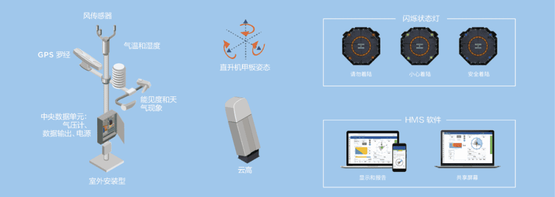 ①CAP 437要求的氣象和環境測量裝置包括維薩拉的風速和風向、氣壓、氣溫、露點、相對濕度、水平能見度、云高云量傳感器,還要求安裝集成閃爍狀態燈和姿態感應裝置。