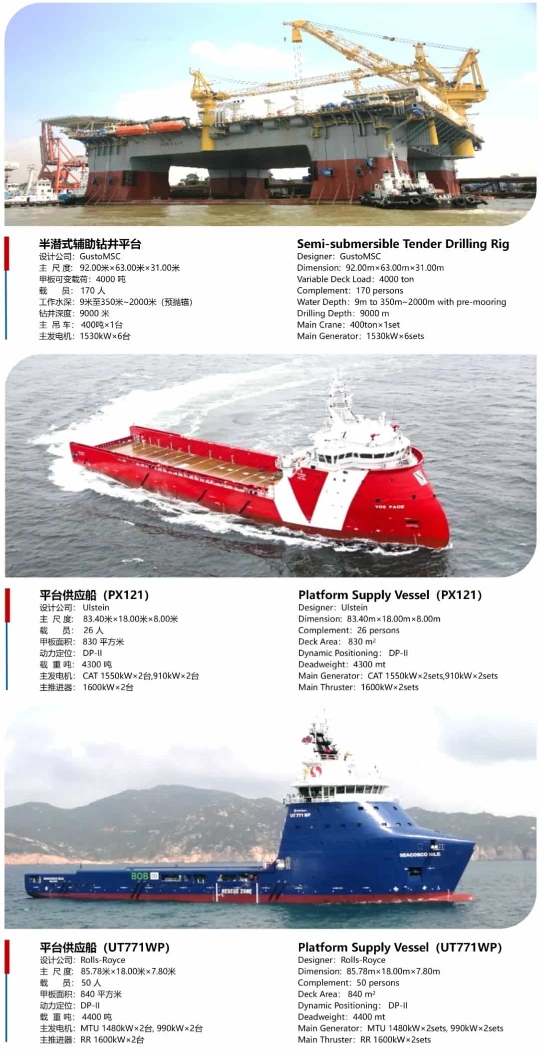 廣東中遠海運重工的船舶修理改裝能力保持在每年300艘左右,修船能力長期位居中國前列;船舶和海工制造產品涵蓋油化船、支線箱船、散貨船、牲畜運輸船、挖泥船、綜合地質調查船、深海原油中轉船、半潛輔助鉆井平臺、平臺供應船、三用工作船、應急響應救援船等多品類船舶和海工裝備。
