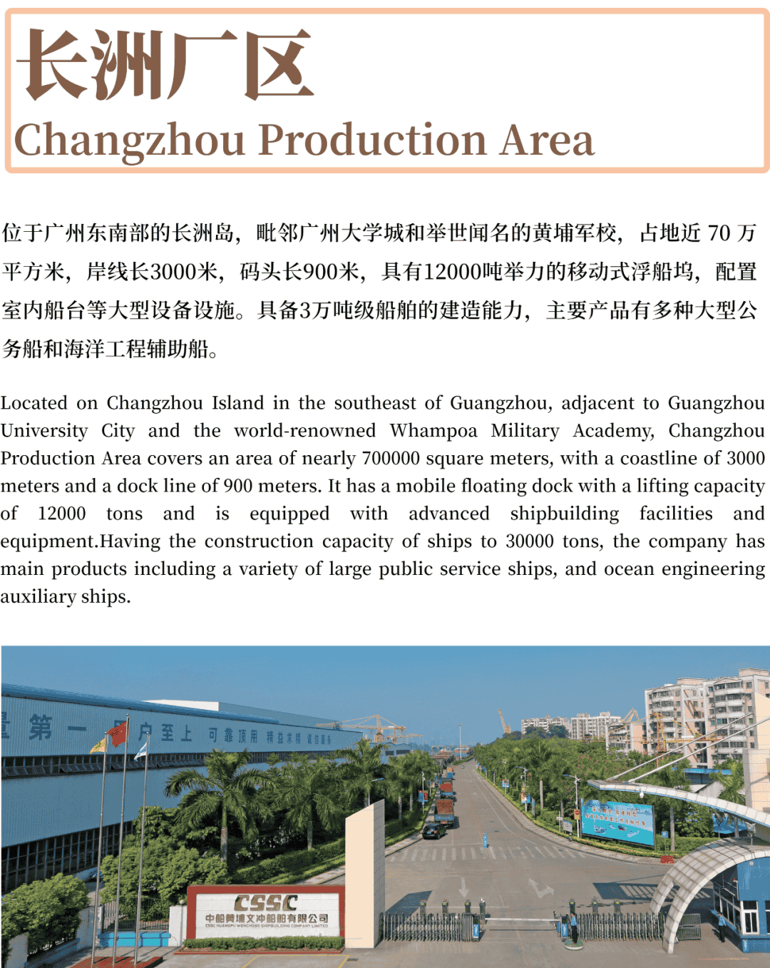 CSSC Huangpu Wenchong Shipbuilding Co., Ltd. (referred to as Huangpu Wenchong) is a large backbone shipbuilding enterprise under China State Shipbuilding Group Co., Ltd. It is a main construction base for special engineering ships, ocean engineering,public service vessels and commercial cargo ships in South China. It is also currently the largest and strongest production base for dredgers and feeder container vessels in China. The company's predecessor was the Couper Shipyard, founded in 1851. As the oldest existing shipbuilding enterprise in China, it is the first industrial enterprise established by foreign capital in China and the birthplace of the first generation of industrial workers in China. For over 170 years, Huangpu Wenchong has left glorious footprints in China's modern history, revolutionary history, and shipbuilding industry development history.
