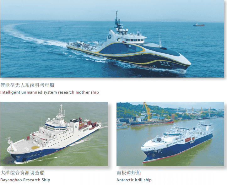 The company has built national marine scientific research vessels such as the Ocean Comprehensive Resources Sur vey Ship "Dayang Hao", the Geophysical Comprehensive Science Survey Ship "Shiyan 6", and the world's first intelligent unmanned system mother ship "Zhuhai Yun”, providing unprecedented tools for conducting marine scientific research, expanding marine science, and supporting the development of the marine economy.