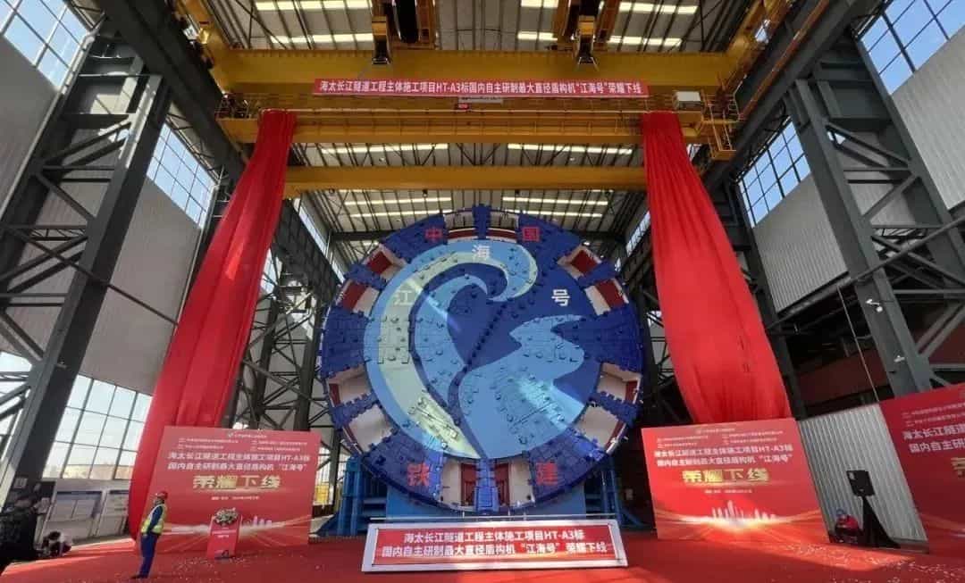 10月31日,中國鐵建重工集團、中鐵十四局集團聯合打造:最大開挖直徑達16.64米的超大直徑盾構機“江海號”下線。這是由我國科研人員自主研制出的最大直徑盾構機。下線后,它將應用于目前世界最長公路水下盾構隧道--海太長江隧道的施工。