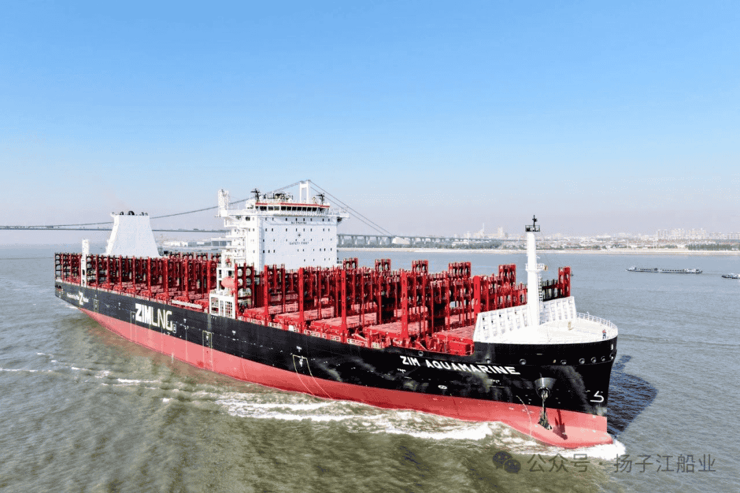 近期,揚子江船業為船東SEASPAN、以星航運(ZIM)建造的15艘LNG雙燃料7000TEU集裝箱船“ZIM AQUAMARINE”輪交付。